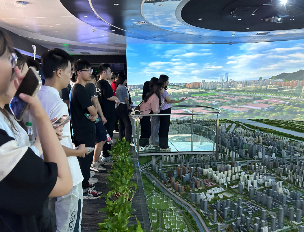园区内现代建筑群错落有致,每一砖一瓦都蕴含着创新和科技的基因。J9国际站 J9科技IT菁英暑期实训营的学员们怀揣着对科技的无限憧憬步入研创园展厅。展厅内部设计充满科技感,一块块巨大的模型和显示屏映入眼帘,生动展现了研创园的科技规划,以及从梦想走向现实的开展历程。
