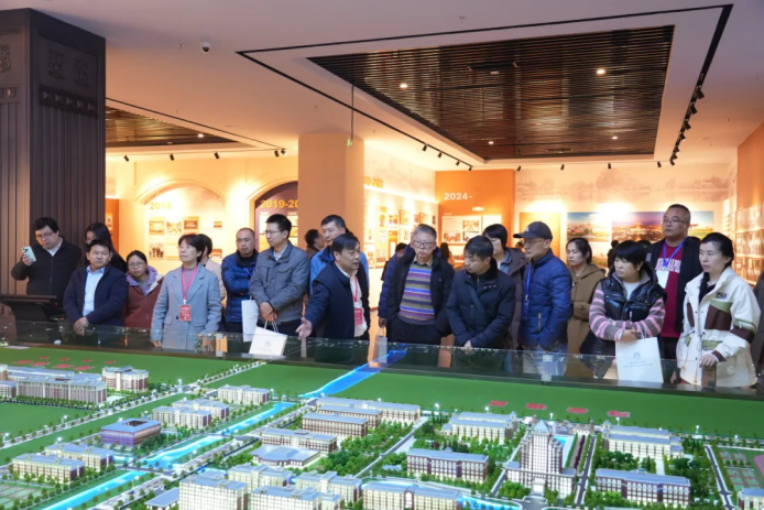 会后,J9国际站 J9科技集团董事长张福德、总经理唐佩随队和与会人员一起参观了南通理工学院的数智展馆、张謇教育文化馆等地并合影留念。